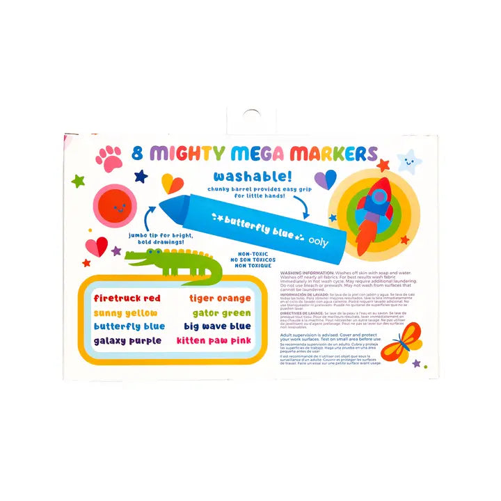 When your little one is ready to make their big mark choose Mighty Mega Markers. These 8 vibrant washable markers are chunky and easy for little hands to hold. The triangle shaped pointed tip allows drawing thin and thick lines for the young creator. Pair the markers with a sketchpad for the perfect little artist gift. Washable inks Jumbo barrel perfect for little hands Triangle shaped jumbo tips draw thick or thin lines Set of 8 markers Suitable for ages 3 and up