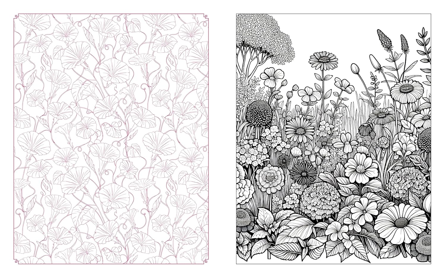 Wildflowers in Bloom Coloring Book. With over 150 patterns and illustrations and beautiful sprayed edges, enjoy a moment of peace and relaxation as you color all the enchanting floral and botanical designs inside.