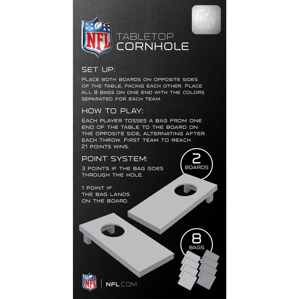 Bring the thrill of the game right to your table with the Detroit Lions Tabletop Cornhole set, the perfect addition for any fan. Each set features two wooden boards decked out in the iconic team colors, proudly displaying the official logo for an authentic look. Whether you’re tailgating, enjoying a family gathering, or just showing off your team pride, this game set is guaranteed to bring out the competitor in everyone. Included in the set are eight premium mini bean bags emblazoned with the team logo and colors. The compact design, it’s the perfect size for both portability and playability. Whether you’re challenging friends, family, or fellow fans, the Detroit Lions Tabletop Cornhole set promises endless hours of fun and team spirit. Includes two 10" x 5" boards and eight 2” x 2” bags. Get ready to score big with this officially licensed NFL product!