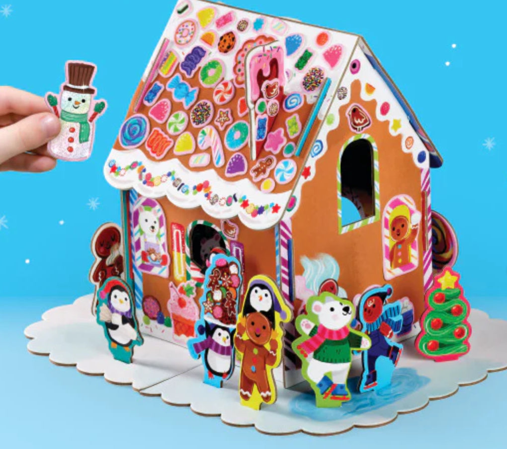 Pop together the easy-to assemble gingerbread house then use your creativity and imagination to decorate with special stickers however you like! Craft up some holiday décor and then have fun playing with the pop-in play pieces. This holiday kit from Crocodile Creek includes paperboard house and base, glitter stickers, and pop-in play pieces.