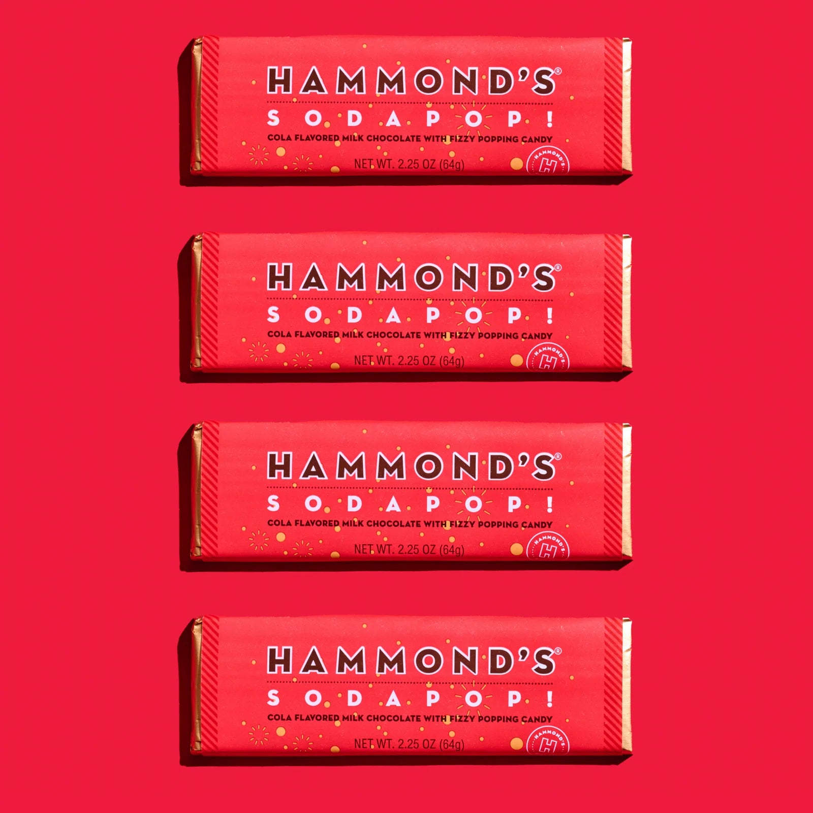 Get ready for a taste explosion with this Hammond's Milk Chocolate Cola Pop Chocolate Bar! Indulge in the delicious milk chocolate bar with a fizzy cola pop rock surprise. This unique candy bar will satisfy your sweet and fizzy cravings all in one bite.