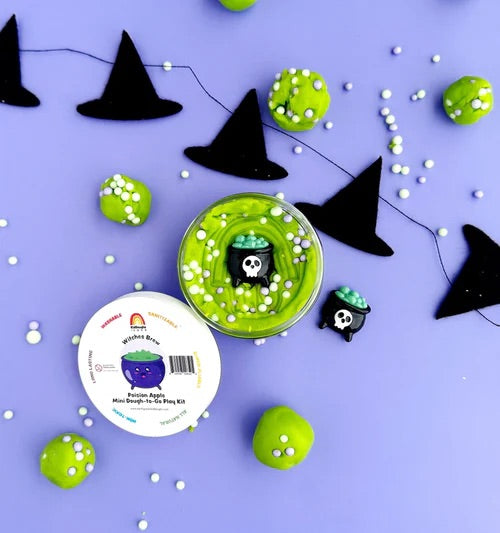 Includes: 4 oz Bright Green (Poison Apple) KidDough, Multi-Color Sensory Balls, Cauldron Charm