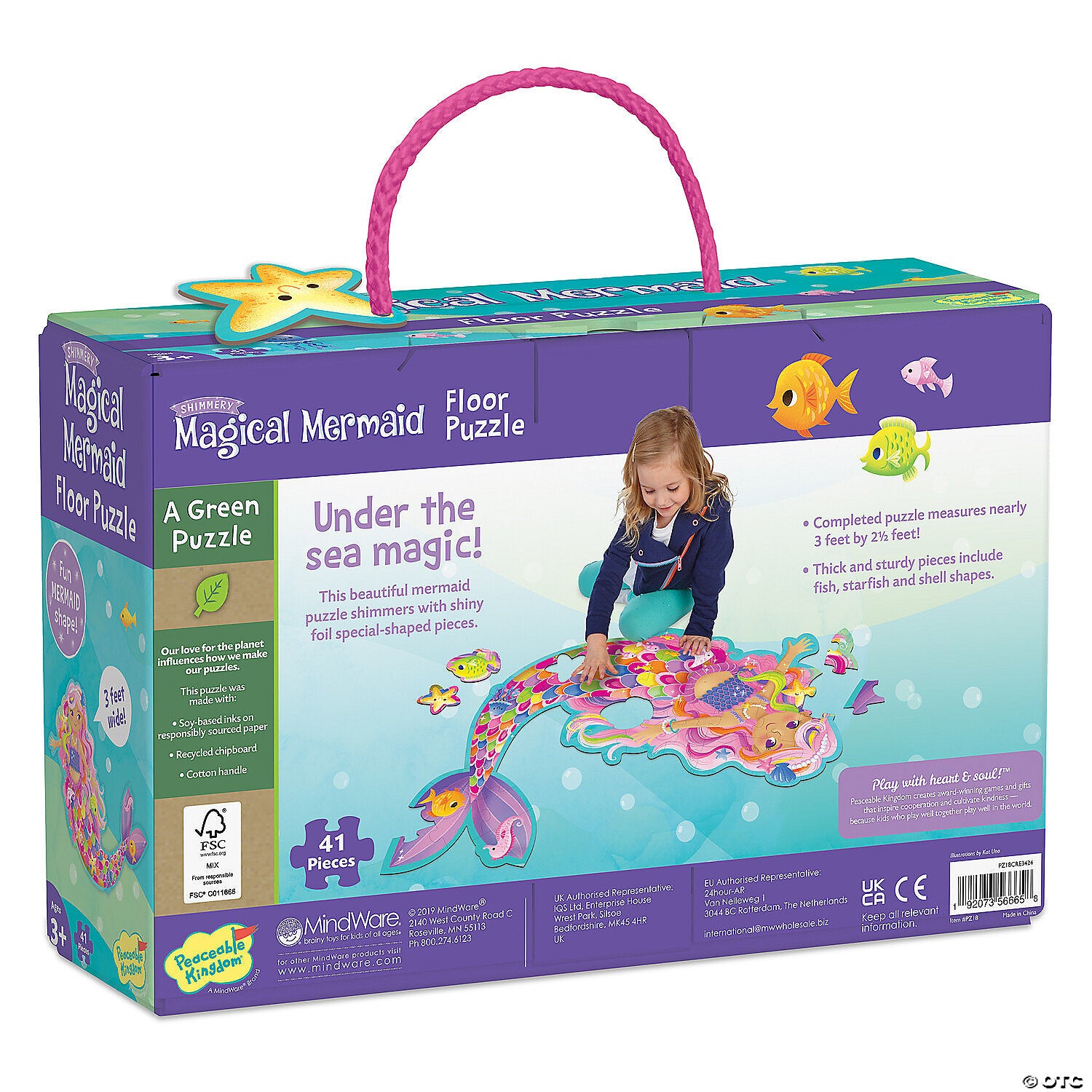 These adorably designed floor puzzles measure approximately 2 x 3 feet with unique puzzle shapes for extra fun. Puzzle pieces are thick and sturdy, and the box includes a corded handle for easy carrying. With puzzles kids learn visual recognition, cooperation, fine-motor development, problem solving and cognitive skills.